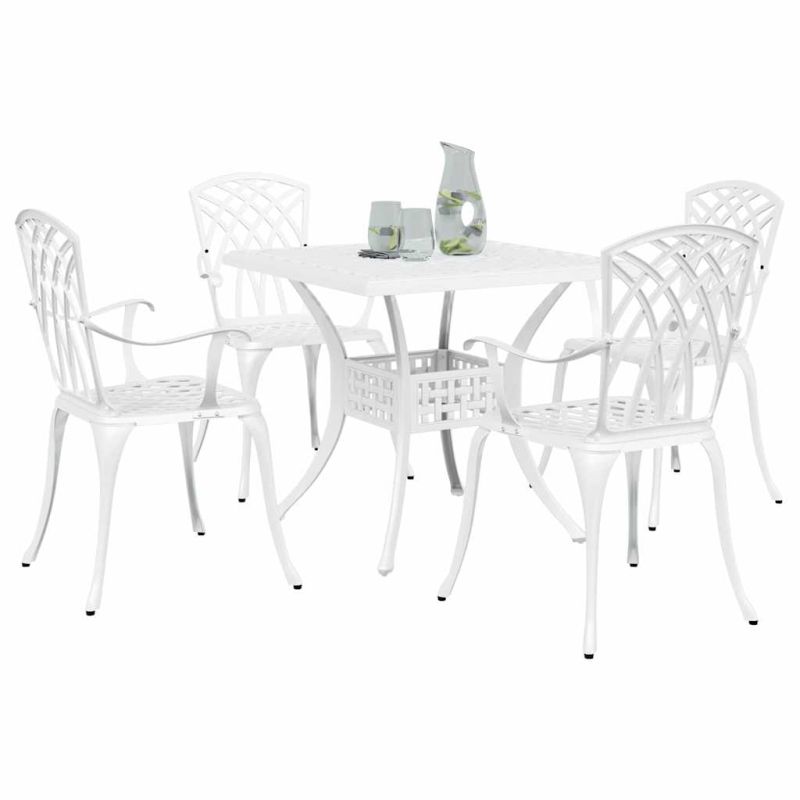 Комплект градинска маса 5 pcs Бяло Лят алуминий