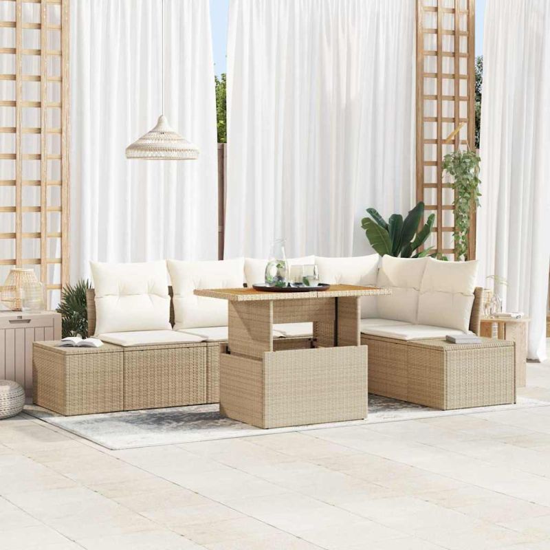 Този комплект за градинско хранене от полиратан те кани да се насладиш на стилно хранене на открито с неговия съвременен, елегантен дизайн. Перфектно пригоден за градината или терасата, този комплект добавя шикозна атмосфера с правоъгълната си форма и модулна конфигурация, предлагаща гъвкави аранжировки, които да отговарят на всякакъв повод. Визуално привлекателната смес от полиратан и акациева дървесина допълва разнообразни открити настройки, правейки го идеален за пролетни и летни събирания, независимо дали организираш весела барбекю вечер или спокойна закуска на слънцето. Издръжливите материали в комбинация с обмисления дизайн осигуряват твоето открито пространство да резонира със sophistication и комфорт. Материали: Комплектът за градинско хранене е красиво изработен от първокласен полиратан, известен със своите UV-устойчиви качества, осигурявайки, че комплектът устоява на силното слънце без да избледнява с времето. Прахово боядисаната стоманена рамка предлага защита срещу ръжда, докато солидната повърхност от акациева дървесина добавя нотка на естествена елегантност, осигурявайки надеждна издръжливост и привлекателна естетика в един пакет. Включени компоненти: Този комплект включва странични дивани, ъглово място и централно място - всички с интегрирани решения за съхранение, за да съхраняват твоите градински принадлежности извън погледа. Освен това, градинската маса предлага достатъчно повърхностна площ за хранене и социализиране. Всеки компонент е проектиран да подобри както функционалността, така и стила, правейки твоята патия любимото място за развлекателни гости. Дизайн: С модулната и регулируема структура, комплектът за хранене може лесно да бъде пренареден, за да отговаря на всяко събитие, от интимни вечери с семейството до по-големи събирания. Квадратните подлакътници и завършената облегалка предоставят комфорт, докато регулиращите крака осигуряват стабилност на всяка повърхност, поддържайки комфорта на гостите през цялото им пребиваване. Препоръчителни приложения: Пригоден за градински и терасови настройки, този комплект за хранене блести в откритите пространства, предлагащ стил в съчетание с практичност. Неговата UV устойчивост и модулни характеристики обхващат слънчеви лета и свежи пролетни вечери, разширявайки твоите опции за забавление още повече. Този комплект прави организирането на всяко събитие в задния двор лесно и приятно. Поддръжка и грижа: За да удължиш живота на комплекта, използвай защитно покритие по време на тежки метеорологични условия и следвай лесните указания за почистване, като избърсваш повърхностите с суха кърпа. Възглавниците за седалки с цип могат удобо да бъдат премахнати за пране, осигурявайки комплектът да остане в безупречно състояние и привлекателен през всички сезони.