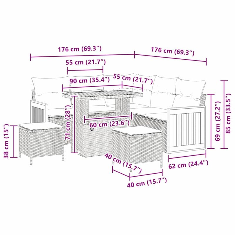 Начало Дом и градина Мебели Външни мебели Външно обзавеждане Градински дивани Градински Софа Комплект с възглавница 8 pcs Бежов и кремав