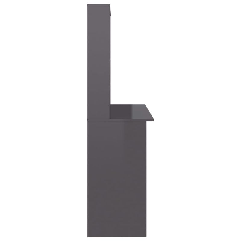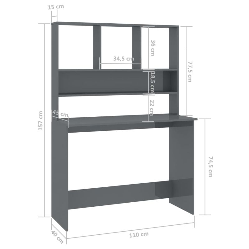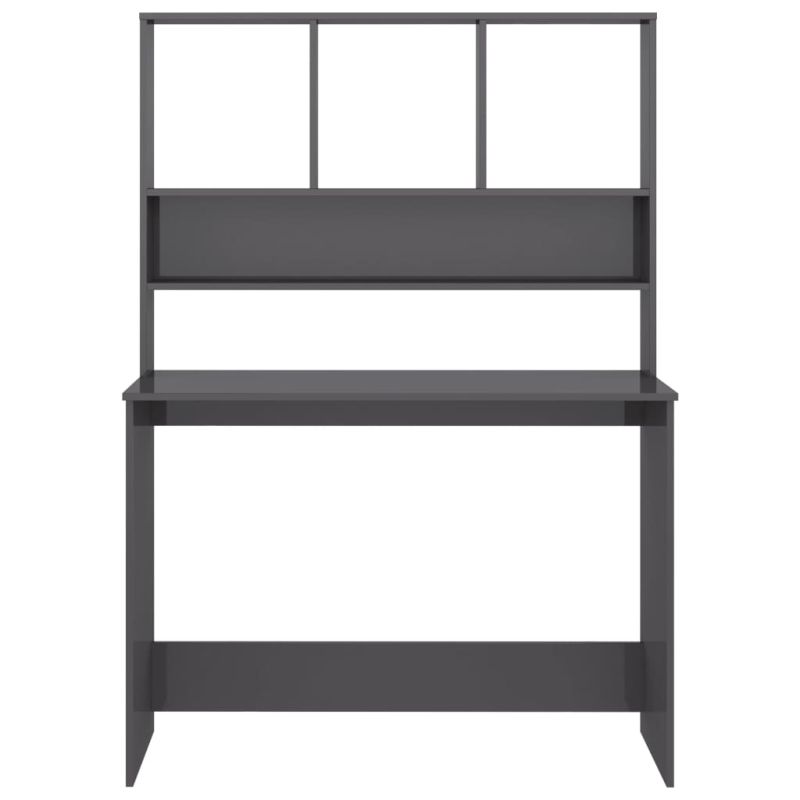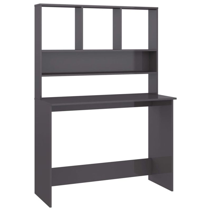 Бюро с рафтове, сив силен гланц, 110x45x157 см, ПДЧ