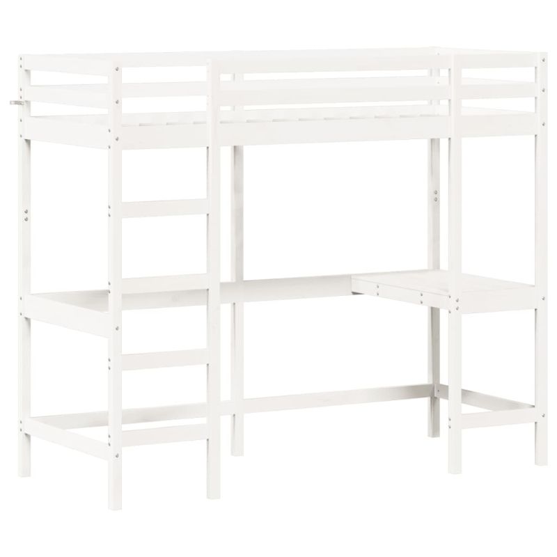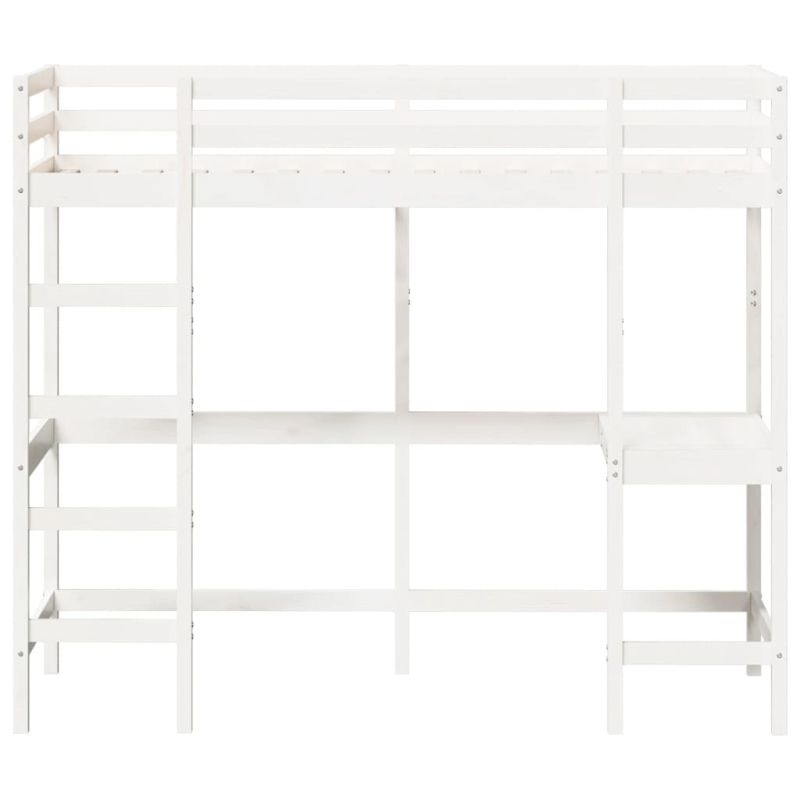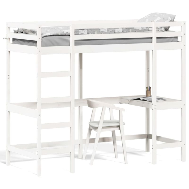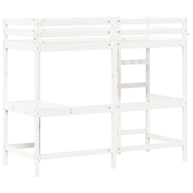 Таванско легло с бюро бяло 80x200 см масивна дървесина бор