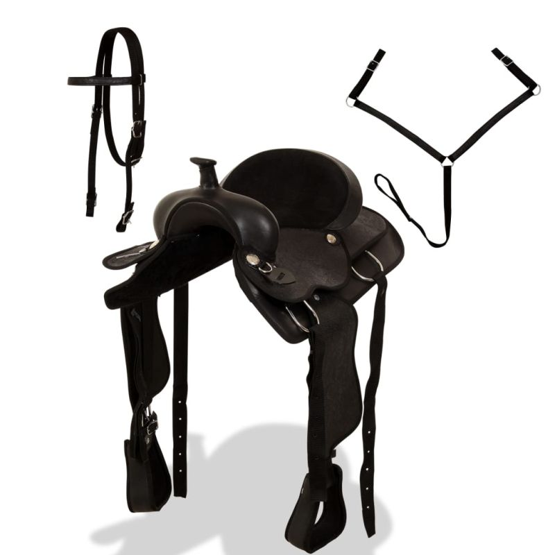 Уестърн седло, оглавник и опас, естествена кожа, 17", черно