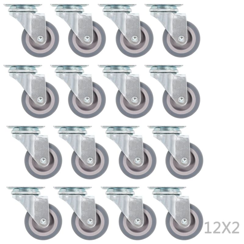 Този комплект от 48 въртящи се колелца ще бъде идеалният аксесоар за дребно оборудване и мебели като работна маса, количка, масичка за кафе, стойка за растения, рафт за книги, количка за пазаруване и др. Тези колелца са изработени от TPR (термопластична гума), която се отличава с добра устойчивост на удари и вибрации, което позволява на колелата да работят безпроблемно и тихо. В допълнение, меката им повърхност ефективно предпазва пода от надраскване. В допълнение, желязната рамка с цинково покритие е много устойчива на ръжда и по този начин допълва здравината и издръжливостта на колелцата. Всяко колелце има максимална товароносимост до 35 кг. Доставката включва 48 въртящи се колела.