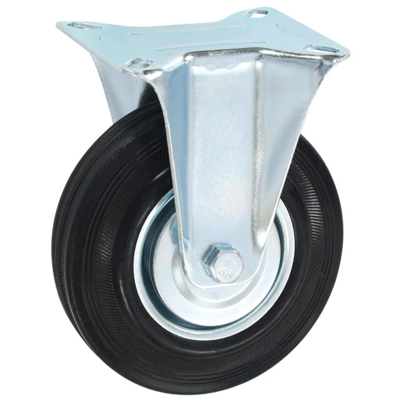 Този комплект от 8 фиксирани колела ще бъде идеалният аксесоар за малко оборудване и мебели като работна маса, количка, масичка за кафе, поставка за растения, рафт за книги, количка за пазаруване и др. Тези колелца са изработени от гума, която се отличава с добра устойчивост на удар и вибрации, което позволява на колелцата да работят гладко и тихо. Освен това техните меки повърхности ефективно предпазват вашия под от надраскване. Освен това желязната рамка с поцинковано покритие е силно устойчива на ръжда и по този начин допринася за здравината и издръжливостта на колелцата. Всяко колело има максимална товароносимост до 100 кг. Доставката включва 8 фиксирани колела.