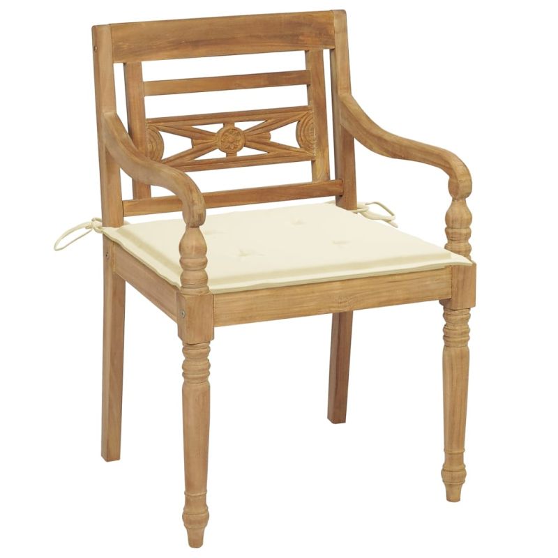 Столове Батавия с възглавници, 4 бр, тиково дърво масив