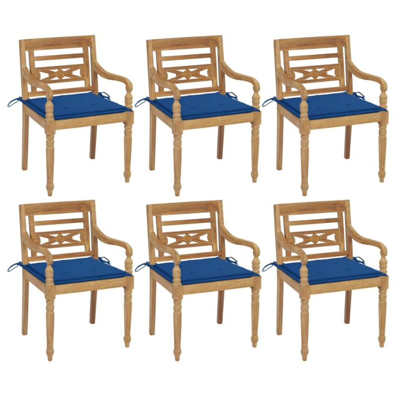 Столове Батавия с възглавници, 6 бр, тиково дърво масив
