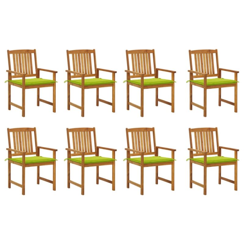 Градински столове с възглавници, 8 бр, акация масив