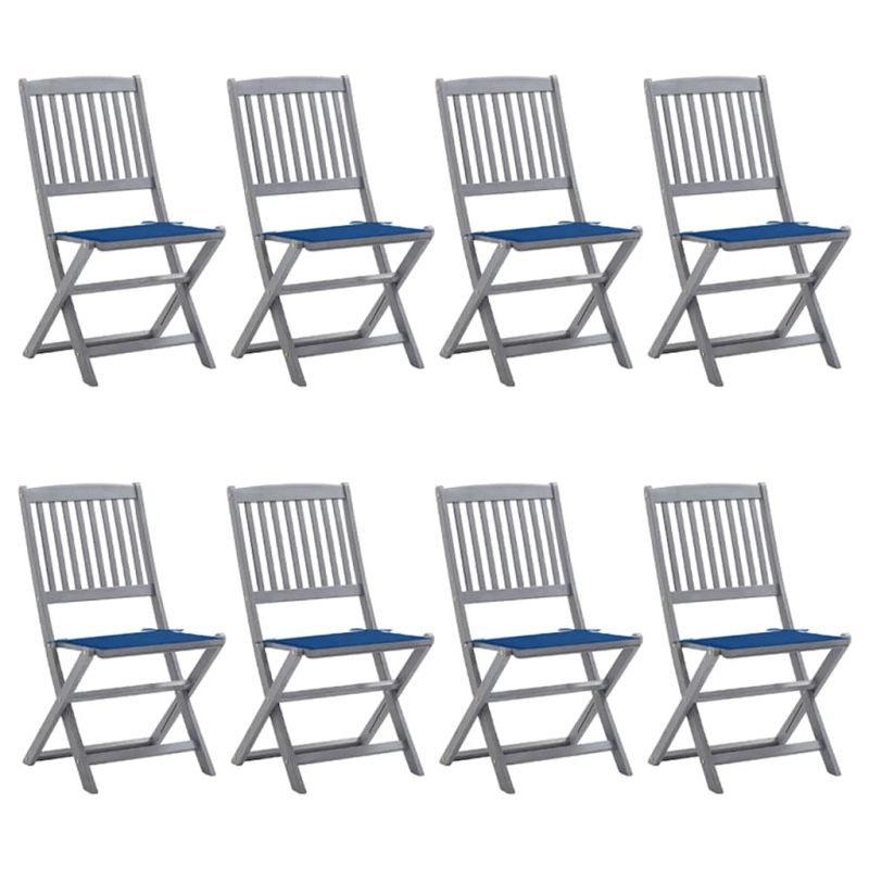 Сгъваеми градински столове, 8 бр, с възглавници, акация масив