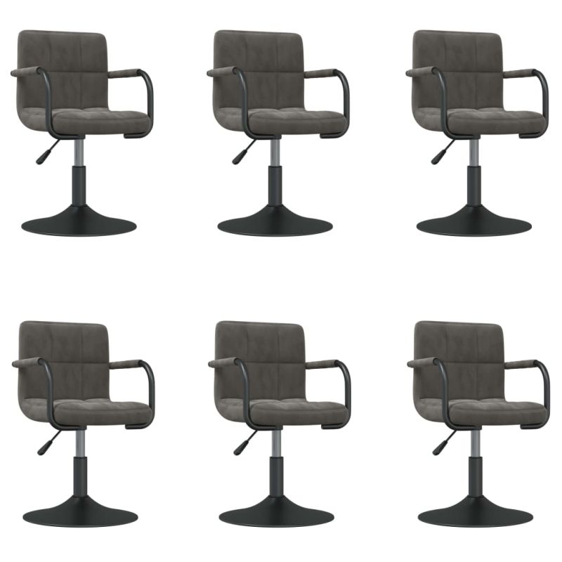 Въртящи се трапезни столове, 6 бр, тъмносиви, кадифе