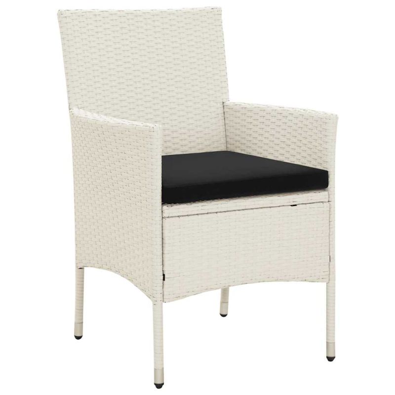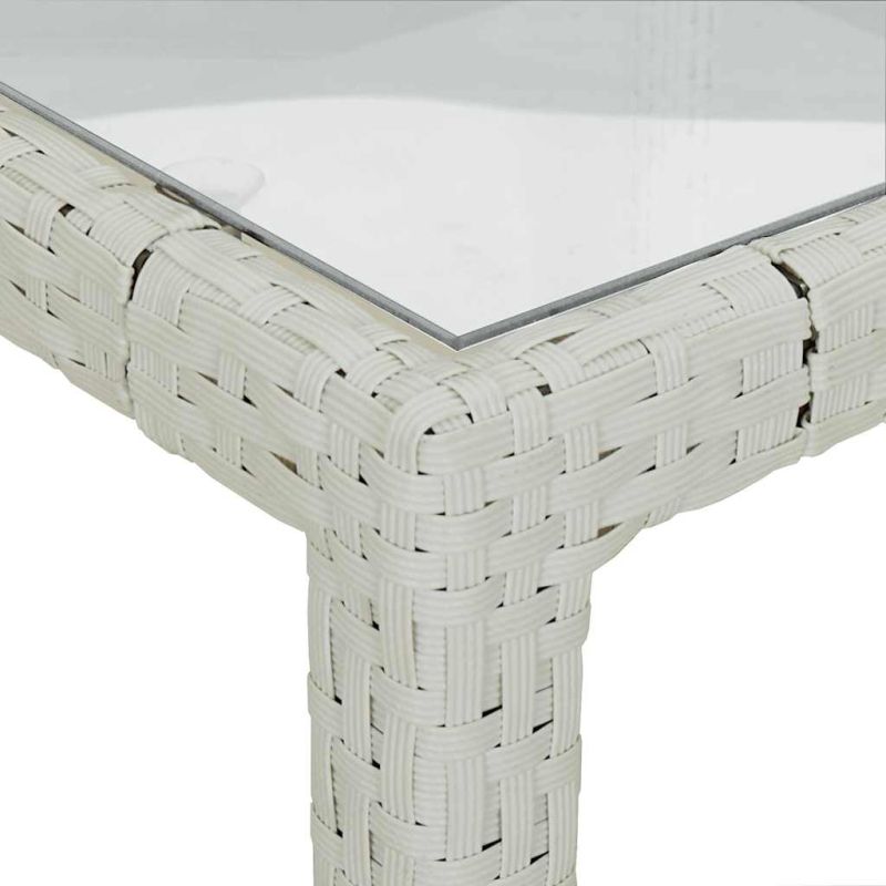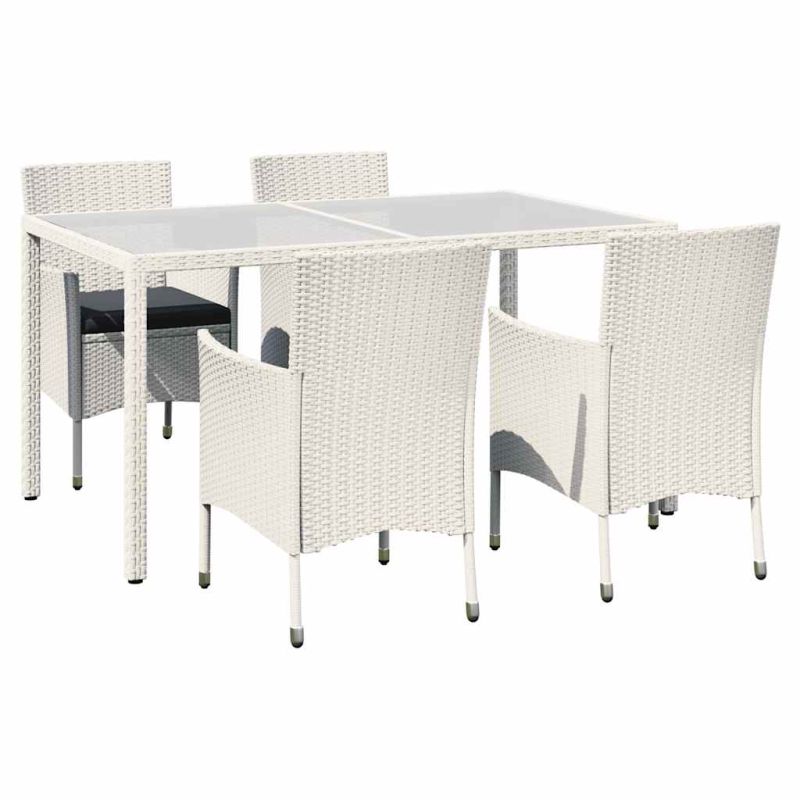 Със стилен дизайн и издръжлива стоманена рамка, този комплект трапезни мебели е перфектен избор за вашето външно жилищно пространство. Този градински трапезен комплект разполага с прахово боядисана стоманена рамка, която прави масата и столовете стабилни и издръжливи. Благодарение на устойчивия на атмосферни влияния и водоустойчив PE ратан, комплектът мебели за открито се почиства лесно. Дебелите, подвижни възглавници на седалката допринасят за комфорта на седене и се перат лесно. Забележка: За да удължите живота на вашите градински мебели, ви препоръчваме да ги защитите с водоустойчиво покритие. Максимално 110 кг на седалка. Съобразете се с риска от открит огън и други източници на силна топлина в близост до продукта.