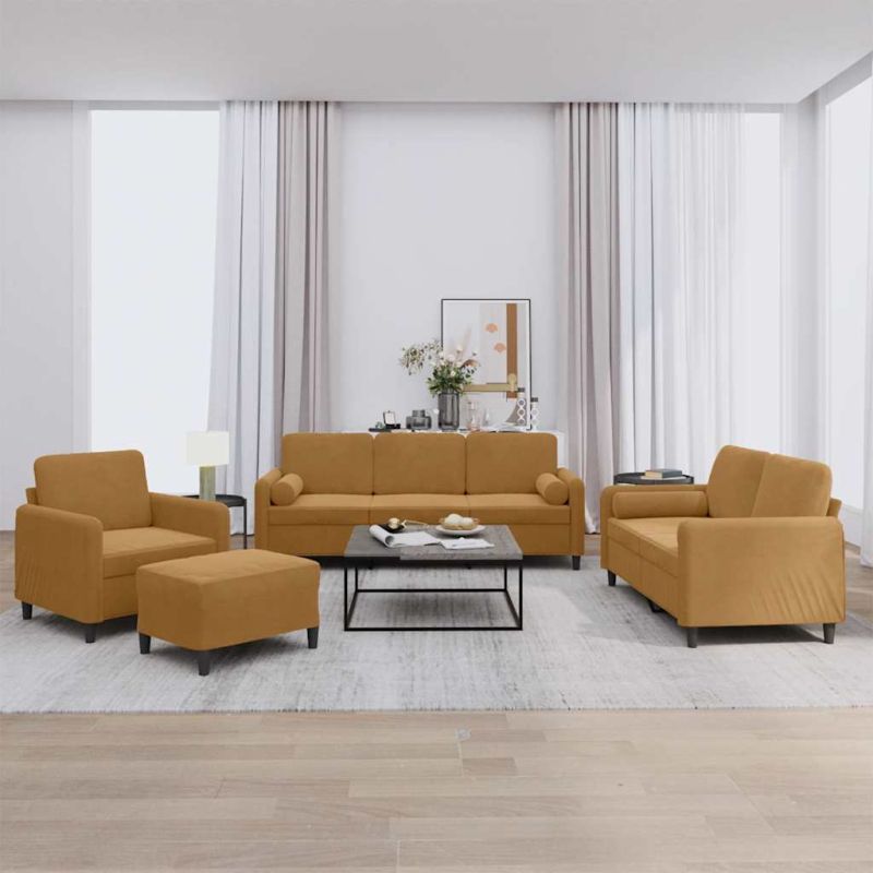 Комплект дивани 4 части с възглавници, кафяв, кадифе