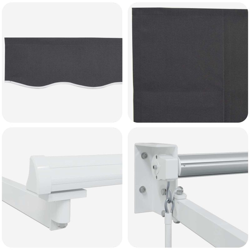 Този ръчен сенник с LED светлини на соларни батерии прави сянка и осветление за тераси, градини и всякакви открити пространства. Може да го нагласите както искате, а соларните LED светлини осветяват всичко вечер, без нужда от контакти. Водоустойчив плат: Изработен е от полиестер с ПУ покритие, за да е устойчив на слънчевата светлина и дъжда. Идеален за често ползване навън! Здрава рамка: Рамката е стоманена и алуминиева, което ѝ дава стабилност, а материалите са устойчиви на корозия. Качеството на конструкцията е на високо ниво! Ръчно управление: Сенникът идва с ръчна дръжка за разтягане и прибирате на сенника, позволявайки ви да регулирате сянката според слънцето. Соларно LED осветление: Има соларни LED лампи, които зареждат през деня за осветление вечер, без нужда от допълнителни захранващи устройства. Инсталационни компоненти: Включен е всичко нужно за поставянето. Следвайте инструкциите и ще го монтирате бързо и сигурно.