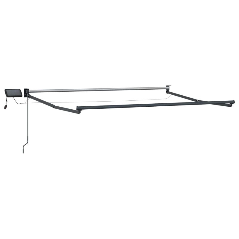 Този ръчен сенник с LED светлини на соларни батерии прави сянка и осветление за тераси, градини и всякакви открити пространства. Може да го нагласите както искате, а соларните LED светлини осветяват всичко вечер, без нужда от контакти. Водоустойчив плат: Изработен е от полиестер с ПУ покритие, за да е устойчив на слънчевата светлина и дъжда. Идеален за често ползване навън! Здрава рамка: Рамката е стоманена и алуминиева, което ѝ дава стабилност, а материалите са устойчиви на корозия. Качеството на конструкцията е на високо ниво! Ръчно управление: Сенникът идва с ръчна дръжка за разтягане и прибирате на сенника, позволявайки ви да регулирате сянката според слънцето. Соларно LED осветление: Има соларни LED лампи, които зареждат през деня за осветление вечер, без нужда от допълнителни захранващи устройства. Инсталационни компоненти: Включен е всичко нужно за поставянето. Следвайте инструкциите и ще го монтирате бързо и сигурно.