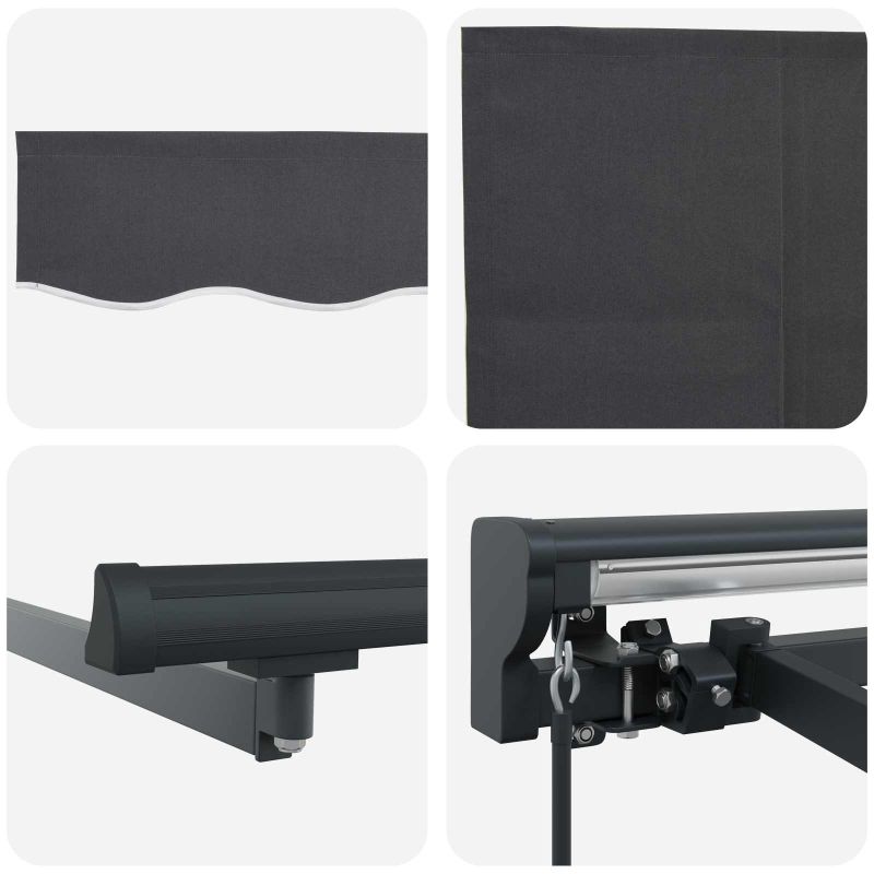 Този прибираем сенник е чудесен за градини и тераси. Може лесно да се разширява или прибира, за да регулира слънчевата светлина и защитата, когато е нужно. Идеален е за хапване на открито, релаксация или просто за посрещане на гости, създава комфортна среда, като предлага защита от слънце и леки дъждове. Сенникът е супер полезно допълнение, за да се наслаждаваш на откритите пространства през цялата година. Устойчиви материали: Изработен е от полиестер с PU покритие, който издържа на всякакво време. Рамката, прахово боядисана от стомана и алуминий, осигурява стабилност за ежедневно ползване навън. Регулируема работа: Сенникът може да се контролира с ръчна ръкохватка или дистанционно, позволявайки лесно разширение или прибиране в зависимост от нуждата от сянка. Структура полу-касета: С прибиращи се рамене и алуминиев вал, който предлага гладко разширение и прибиране, и защитава плата, когато не се използва. Открита сянка: Подходящ е за дворове, градини и тераси, прибираемата функция позволява регулиране на зоната сянка според условията на слънчевата светлина. Изисквания за монтаж: Сенникът е проектиран за монтаж на стена. Нужни са основни инструменти като отвертка, бормашина и клещи. Следвай инструкциите за правилно сглобяване и монтаж.