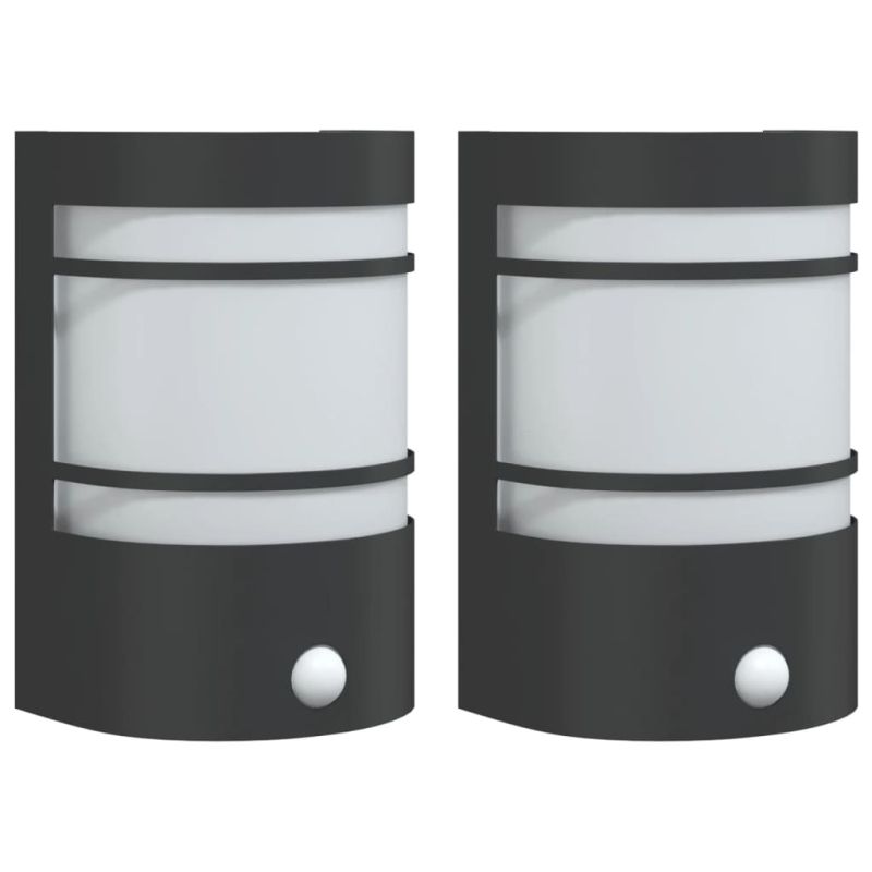 Външни стенни лампи със сензори, 2 бр, черни, инокс