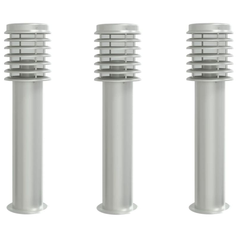 Външни подови лампи, 3 бр, сребристи, 60 см, неръждаема стомана