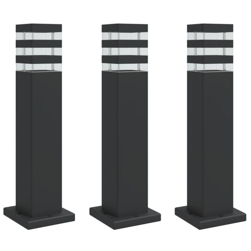 Външни подови лампи, 3 бр, черни, 50 см, алуминий