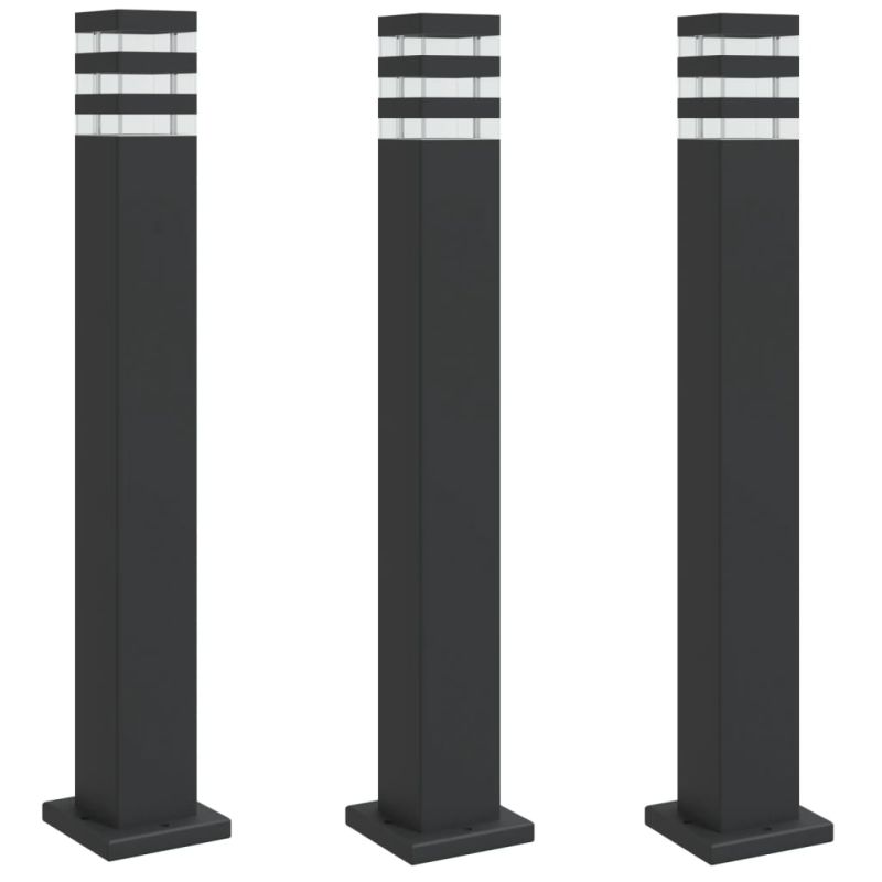 Външни подови лампи, 3 бр, черни, 80 см, алуминий