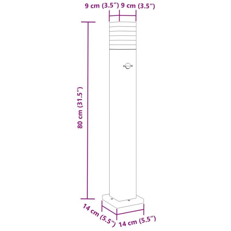 Външна подова лампа със сензор, черен, 80 см, алуминий