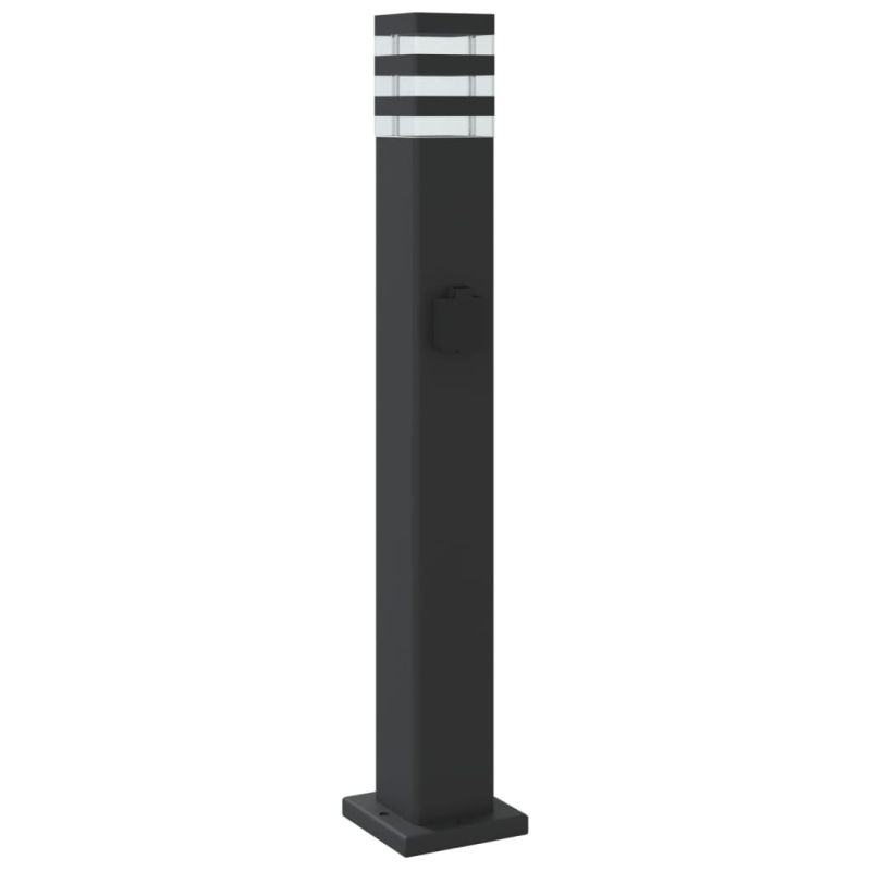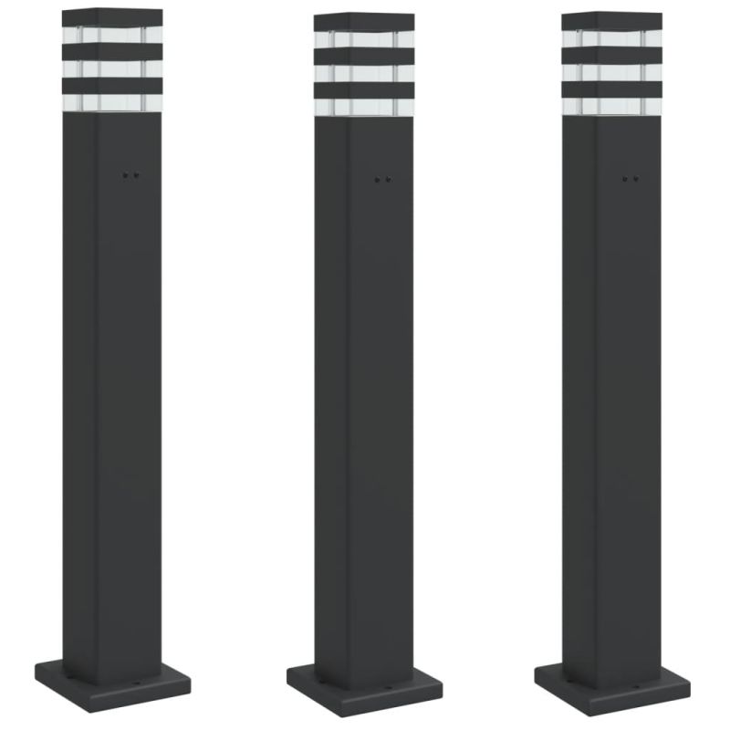 Външни подови лампи с контакт, 3 бр, черен, 80 см, алуминий