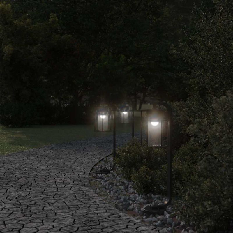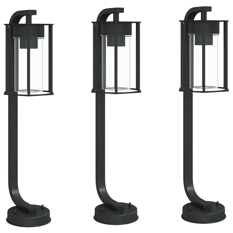 Външни подови лампи, 3 бр, черни, 60 см, неръждаема стомана