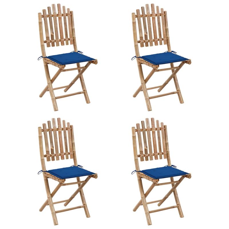 Градински трапезен комплект сгъваем възглавници 5 части бамбук
