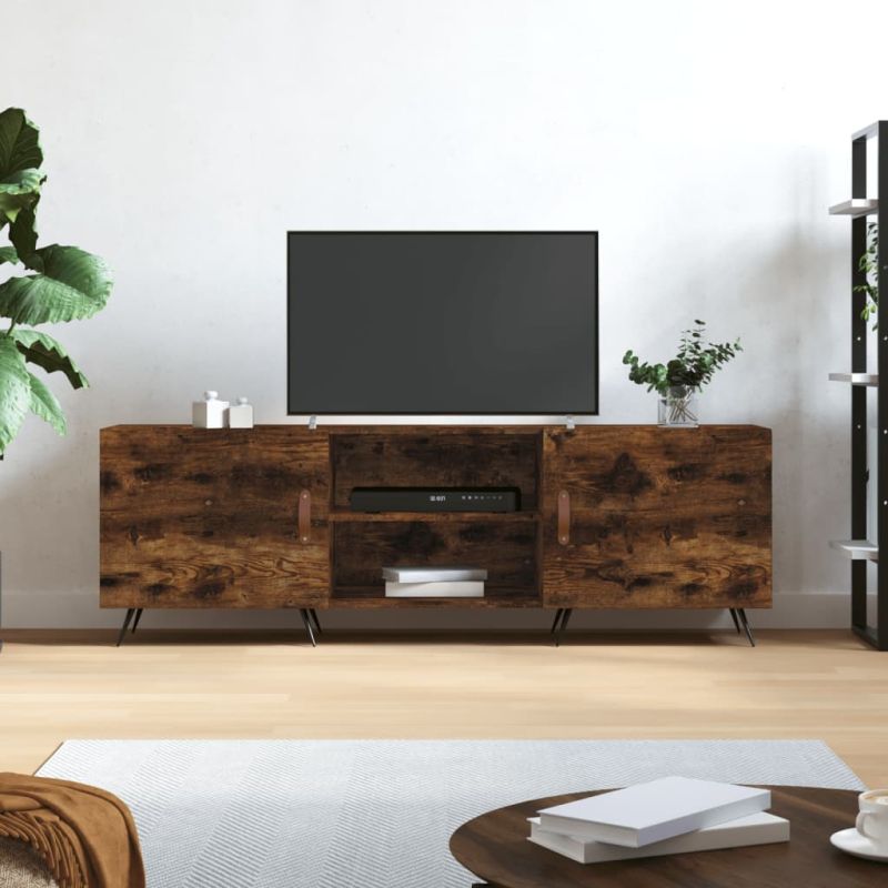 Този здрав ТВ шкаф е проектиран да бъде фокусна точка на вашата стая със своя модерен и практичен дизайн. Издържлив материал: Инженерната дървесина е с изключително качество с гладка повърхност и също така се отличава със здравина, стабилност и устойчивост на влага. Изработена от инженерно дърво, тази ТВ поставка е лесна за почистване.Достатъчно място: ТВ модулът е с 4 отделения, които го правят идеално място за съхранение на вашите списания, DVD-та и други предмети.Декоративна функция: Здравата горна част на шкафа за мултимедийни устройства е идеална за нареждане на декоративни предмети, като рамки за снимки и растения.Практична врата: Запазете най-важните си вещи от прах, като ги скриете зад вратите на модула за мултимедийни устройства.Железни крака: Железните крака добавят спокоен стил към вашия интериор, като същевременно осигуряват стабилност. Внимание:За да се предотврати преобръщане, този продукт трябва да се използва с предоставената приставка за стена.