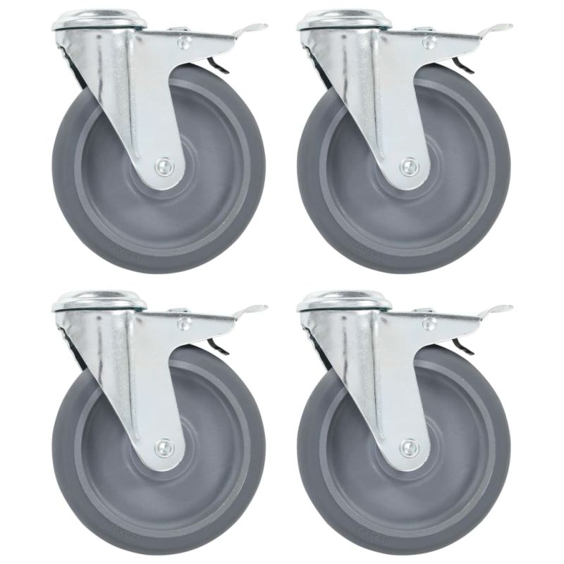 Въртящи се колела с отвор за болт и двойни спирачки 4 бр 125 мм