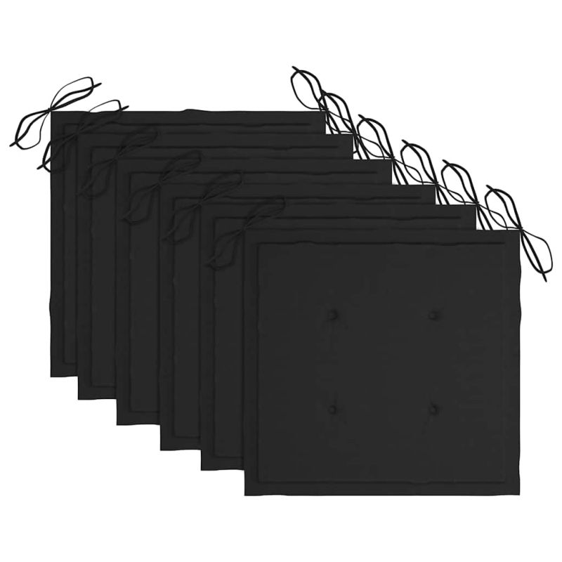 Градински столове с черни възглавници 6 бр тиково дърво масив