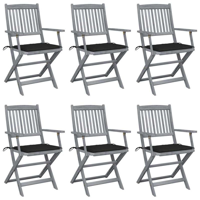 Сгъваеми градински столове, 6 бр, с възглавници, акация масив