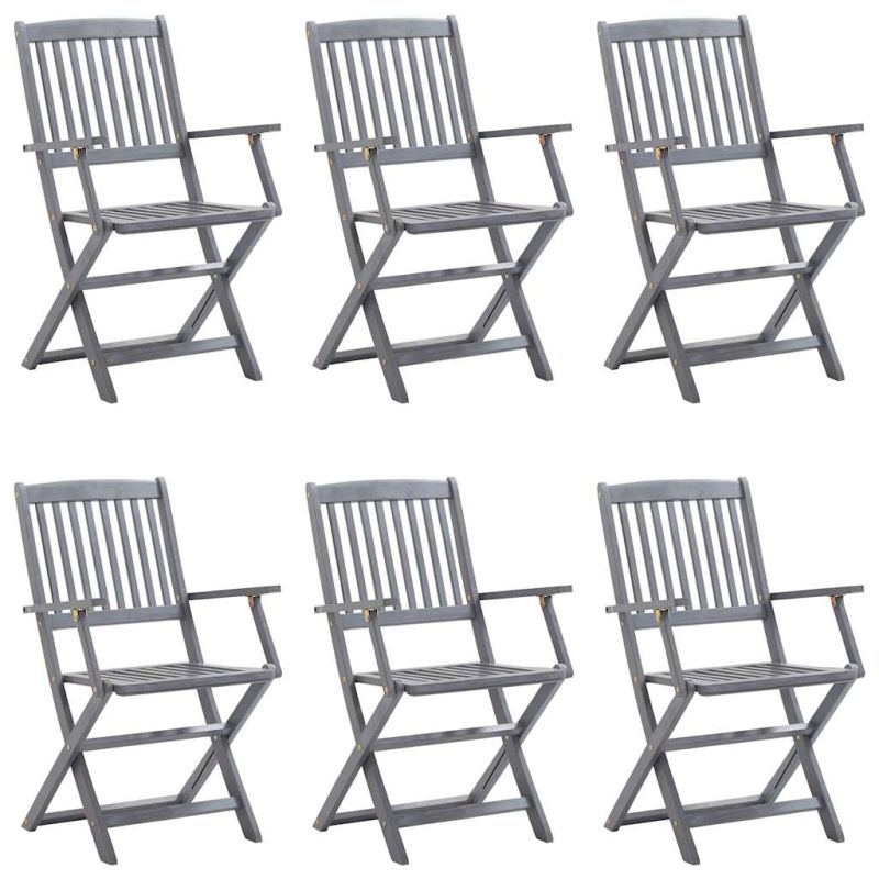 Начало Дом и градина Мебели Външни мебели Външно обзавеждане Градински столове Сгъваеми градински столове, 6 бр, с възглавници, акация масив