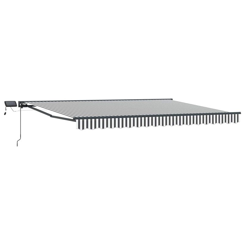 Този модерен ръчен сенник с LED е перфектен за открито и е съчетание от простота и удобство. Създаден е, за да допълва градини и тераси, с изискана конструкция, която е подходяща за частни домове и търговски места с елегантни линии. Идеален е за тези, които обичат съвремието, предлага лесно персонализирана сянка и LED светлини за приятно изживяване в сезона. Премиум материали: Този сенник е изработен с прахово боядисана алуминиева рамка и полиестер, които осигуряват супер дълготрайност и устойчивост на времето. Тези материали не задържат мръсотия и не избледняват, правейки сенника надеждно допълнение за всяко открито пространство, независимо от времето. Вградена осветление: С LED светлини, този сенник дава не само сянка през деня, но и осветява вечер. LED лампите пестят енергия и дават топла, уютна светлина, която добавя настроение на всяко вечерно събиране. Лесен за употреба дизайн: С полу-касетен дизайн и здрави разтегателни ръкави, той е функционален и стилен. Лесно се управлява ръчно или с дистанционно, давайки ви пълен контрол над сянката и светлината. Универсална функционалност: Идеален за градини и тераси, разтегателният сенник е чудесен за всякакви външни събития. Съчетава сянка и осветление през нощта, правейки ви удобно и полезно. Лесно поддържане: Лесен за сглобяване с обикновени инструменти. Дизайнът минимизира нуждата от поддръжка, а праховото покритие улеснява почистването и запазването на добрия му вид.