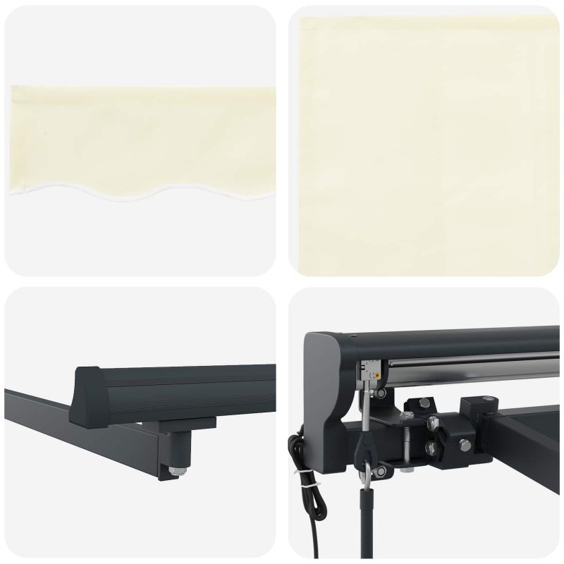 Този прибираем сенник е чудесен за градини и тераси. Може лесно да се разширява или прибира, за да регулира слънчевата светлина и защитата, когато е нужно. Идеален е за хапване на открито, релаксация или просто за посрещане на гости, създава комфортна среда, като предлага защита от слънце и леки дъждове. Сенникът е супер полезно допълнение, за да се наслаждаваш на откритите пространства през цялата година. Устойчиви материали: Изработен е от полиестер с PU покритие, който издържа на всякакво време. Рамката, прахово боядисана от стомана и алуминий, осигурява стабилност за ежедневно ползване навън. Регулируема работа: Сенникът може да се контролира с ръчна ръкохватка или дистанционно, позволявайки лесно разширение или прибиране в зависимост от нуждата от сянка. Структура полу-касета: С прибиращи се рамене и алуминиев вал, който предлага гладко разширение и прибиране, и защитава плата, когато не се използва. Открита сянка: Подходящ е за дворове, градини и тераси, прибираемата функция позволява регулиране на зоната сянка според условията на слънчевата светлина. Изисквания за монтаж: Сенникът е проектиран за монтаж на стена. Нужни са основни инструменти като отвертка, бормашина и клещи. Следвай инструкциите за правилно сглобяване и монтаж.