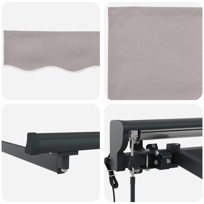 Този супер готин електрически подвижен сенник е точно това, от което се нуждае твоето открито пространство! Осигурява регулируема сянка и е перфектен за всяка градина или тераса, комбинирайки стил и функция. Представи си да си на спокойна места и да се наслаждаваш на природата, защитен от силното слънце. Сенникът се закрепва красиво на стената, като не заема много място, а предлага голямо покритие. Устойчив материал: Изработен от полиестер с PU покритие, материалът на сенника е супер здрав и подходящ за всякакво време през годината. Освен, че е як, цветът му не избледнява и твоето открито пространство изглежда отлично винаги. Лесна работа: Сенникът идва с дистанционно и ръчна дръжка, което го прави супер готин за управление. Бързо можеш да сменяш сянката или да настроиш всичко за забавления с приятели. Стабилна рамка: Здравата рамка от прахово боядисана стомана и алуминий осигурява дълговечност – ултра стабилна! Праховото покритие я защитава от износване, така че всичко работи гладко. Лесен монтаж: Стенният монтаж е лесен с предоставените компоненти. Настройването е супер бързо и просто, а включените инструкции правят всичко още по-лесно! Практичен дизайн: Полу-касетният дизайн е не само готин, а и много удобен; скрива механизма, а същевременно предлага стегната и линейна защита. Сенникът плътно лежи на стената на сградата, оптимизирайки пространството навън и е много ефективен при защита от времето.