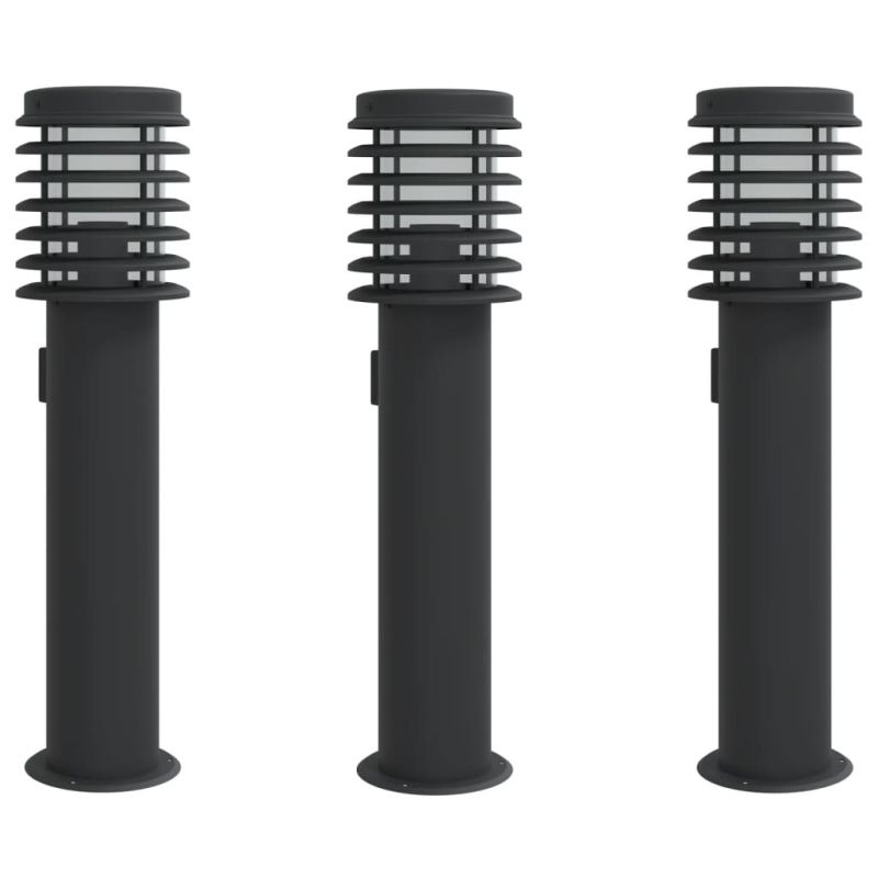 Външни подови лампи с контакт, 3 бр, черни, 60 см, инокс