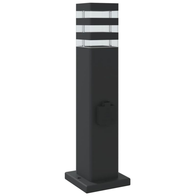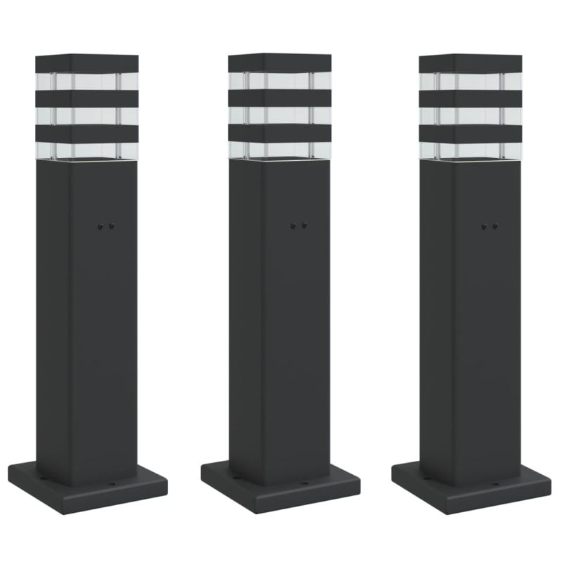 Външни подови лампи с контакт, 3 бр, черен, 50 см, алуминий