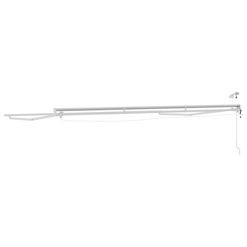 Тази модерна електрическа рамка за подвижен навес с LED е стилно допълнение за всякакви открити пространства. Удобна за градини и тераси, тя ще ви предостави сянка и приятно усещане. Перфектна за хора, които обичат минималистични решения, навесът предлага чисти линии и удобно проектиране, което ще освежи вашия двор или градина. Здрава конструкция: Рамката е изработена от прахово боядисана стомана и алуминий, което осигурява силна структурна опора и устойчивост на външните условия. Издръжливите материали помагат да се гарантира стабилна работа при дългосрочна външна употреба. Ретрактируеми рамена с двойна работа: Механизмът с прибиращи се рамена позволява сенникът да се разширява или прибира по нужда. Може да се управлява както електрически, така и ръчно, а включената ръчна дръжка за крикове позволява лесна настройка на покритата площ. Слънчеви LED светлини: Интегрираните LED светлини се захранват от соларен панел, осигурявайки осветление за вечерна употреба без необходимост от външно електрическо свързване. Полу-касетна защита: Полу-касетната структура помага да се предпази платното и вътрешният механизъм, когато сенникът е прибран, намалявайки експозицията на прах и климатични условия. Монтиране на стена: Рамката е проектирана за стенен монтаж, предоставяйки стабилна опора за външни сенници. Структурата ѝ позволява сигурно инсталиране на подходящи външни стени, което я прави практична за тераси, патета и градински зони за сядане.