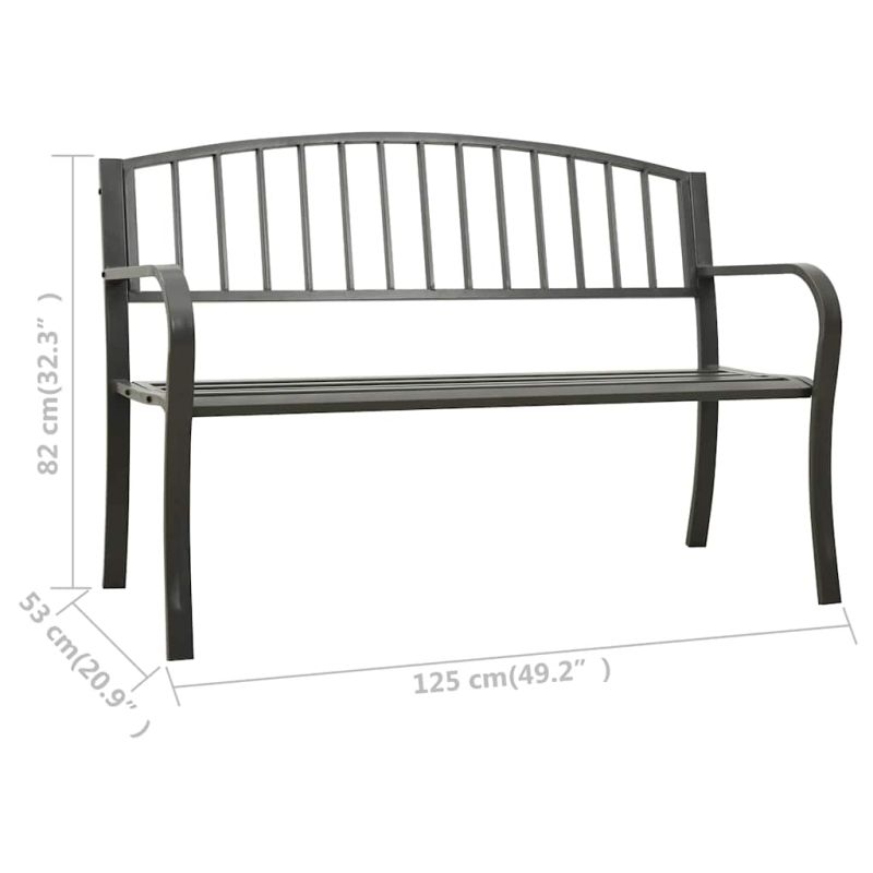 Със стилен и практичен дизайн тази градинска пейка ще обогати вашето открито жилищно пространство! Изработена от прахово боядисана стомана, тази градинска пейка е устойчива на атмосферни влияния и много издръжлива. Два извити метални подлакътника ви осигуряват идеално място за почивка на уморените ви ръце. Отпуснете се и се насладете на свободното си време на тази прекрасна пейка!