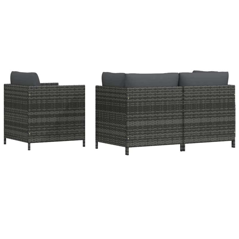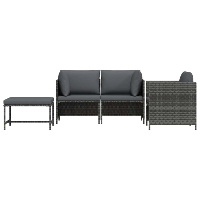 Градински комплект с възглавници, 4 части, полиратан, сив
