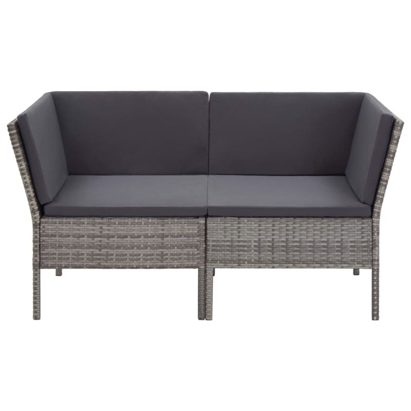 Градински комплект с възглавници, 6 части, полиратан, сив