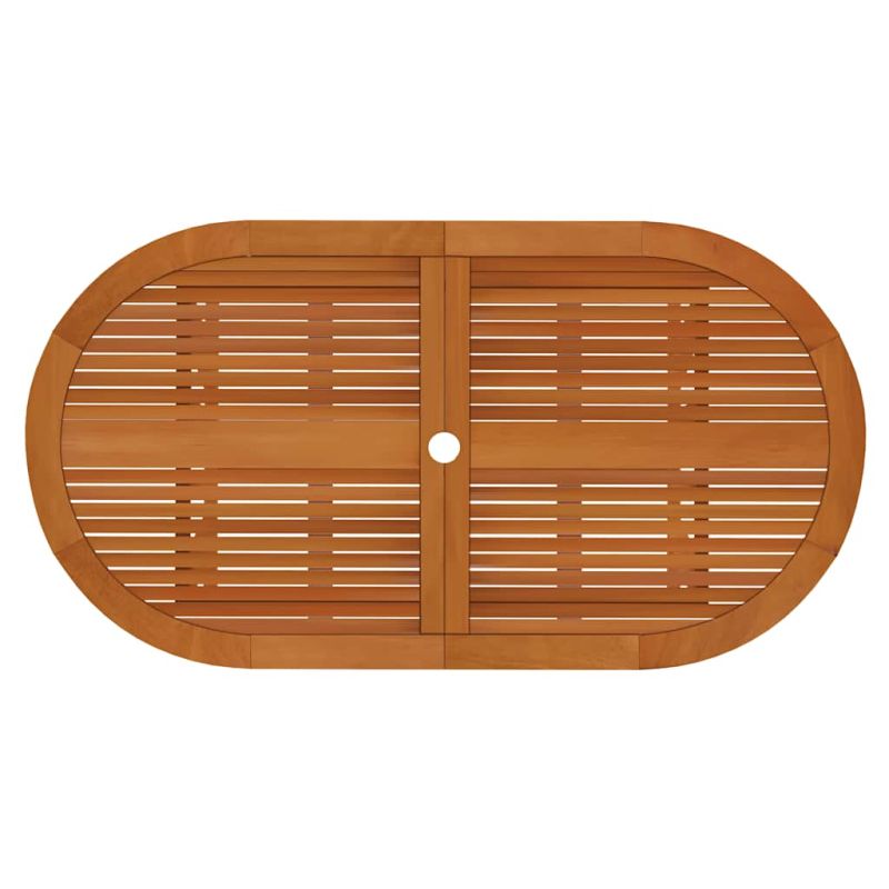 Този дървен градински трапезен комплект има рустикален, непреходен дизайн и ще бъде чудесен избор за хранене в градината или на вътрешния двор. Масивно евкалиптово дърво: Масивното евкалиптово дърво е красив естествен материал. Евкалиптовото дърво е изключително плътно и водоотблъскващо. Материалът е известен с наситения си червеникаво-кафяв цвят.Практичен отвор за чадър: Тази градинска маса разполага с отвор за чадър, за да осигури подходящо място за чадъра ви, който да ви предпази от слънчеви лъчи и дъжд.Накланящи се дървени столове: Градинските фотьойли се отличават с извити седалки и облегалки. Освен това облегалката може да се регулира в 5 позиции, така че винаги можете да намерите удобна поза.Сгъваем дизайн: Тези трапезни столове могат да се сгъват, за да спестят място, когато не се използват. Можете лесно да ги носите със себе си навсякъде по време на вашите пътувания на открито. Забележка:Забележка: За да удължите живота на вашите градински мебели, ви препоръчваме да ги защитите с водоустойчиво покритие. Максимално 110 кг на седалка.
