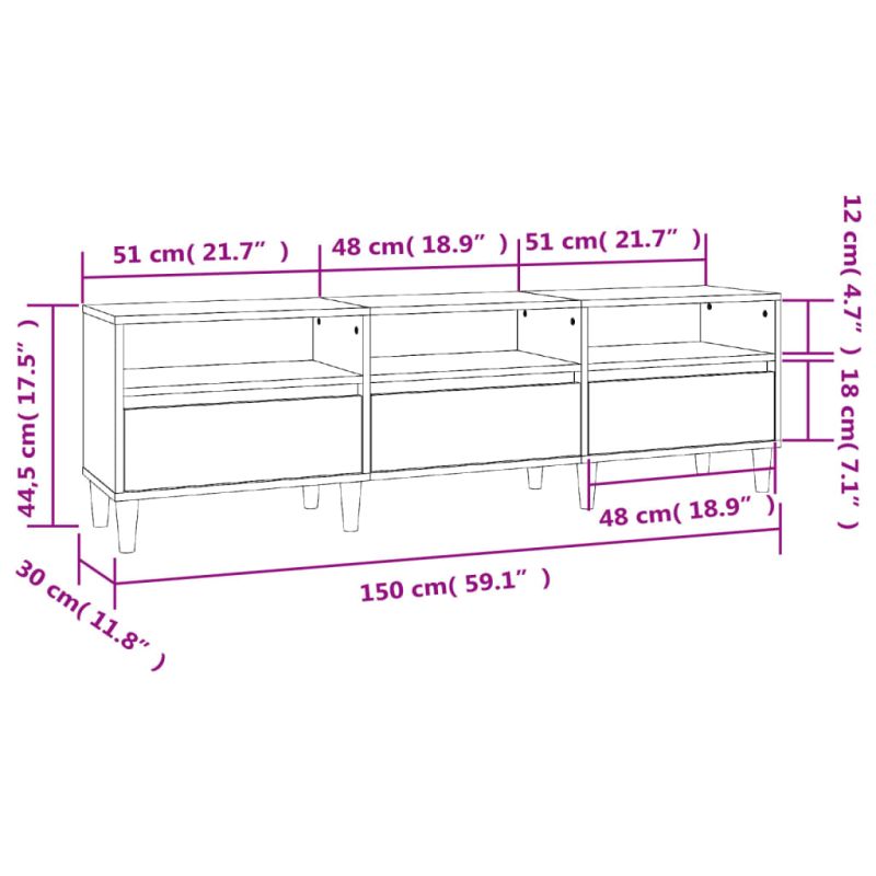 ТB шкаф, сив сонома, 150x30x44,5 см, инженерно дърво