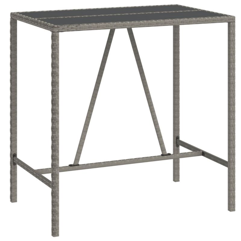 Този модерен градински бар комплект, съчетаващ както стил, така и функционалност, със сигурност е предназначен да бъде центърът на вашата градина, вътрешен двор и всяко друго жилищно пространство. Материал, устойчив на атмосферни влияния: PE ратан, известен също като полиратан, е устойчив на атмосферни влияния и лесен за почистване. Той остава красив отвън за дълъг период от време. Предлага отлично качество, удобство и естетичен вид.Удобство при седене: Бар столът е проектиран с поставка за крака, облегалка и подлакътници, за да ви предложи удобно изживяване при сядане. Меките възглавници на седалката и облегалката също добавят допълнителен комфорт.Плот от закалено стъкло: Плотът е изработен от закалено стъкло, което го прави лесен за почистване. Освен това предлага отлична опора за съхранение на вашите напитки, закуски и любимите ви декорации.Здрава и стабилна рамка: Прахово боядисаните стоманени рамки правят пъб комплекта здрав и стабилен за ежедневна употреба на открито.Широки приложения: Бар масата с табуретки със своя забележителен дизайн създава приятна цялостна визия, която се интегрира без усилие във всяка среда. Добре е да се знае:За да сте сигурни, че вашите външни мебели ще останат красиви, ви препоръчваме да ги защитите с водоустойчиво покривало. Максимално 110 кг на седалка. Съобразете се с риска от открит огън и други източници на силна топлина в близост до продукта.