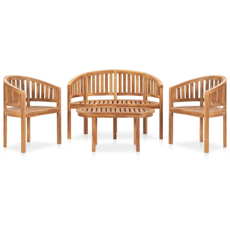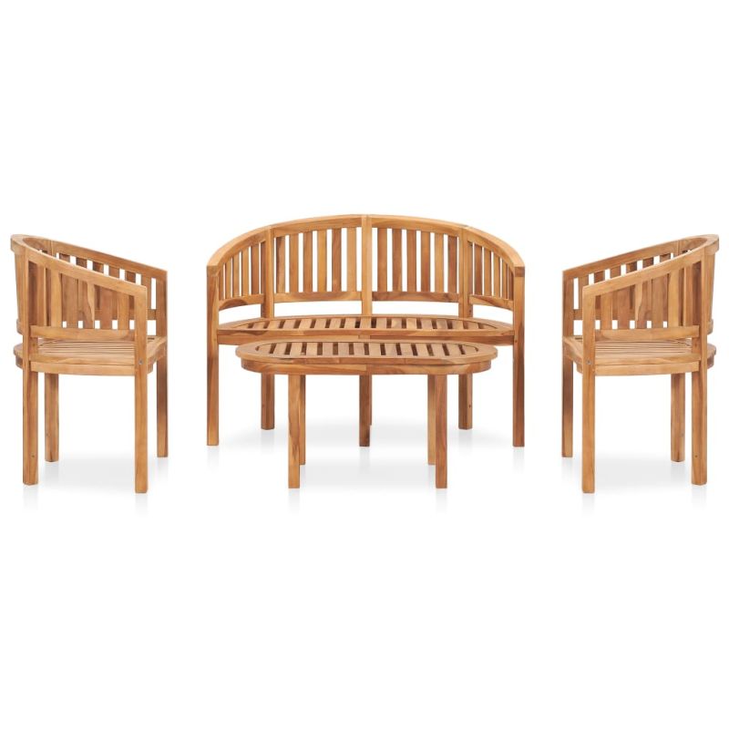 Градински лаундж комплект с форма на банан, 4 части, тик масив