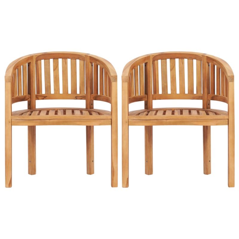Създайте релаксираща дневна зона с този съвременен дървен градински лаундж комплект. Този комплект градински мебели е изработен от изключително издръжлива тикова твърда дървесина, която е суха – изсушена в пещ и фино шлифована, за да ѝ се придаде много гладък вид. Тиковото дърво е известно с изключителната си здравина и устойчивост на атмосферни влияния, което го прави далеч по-подходящо за градински мебели от всеки друг вид дърво. Тиковата дървесина е идеалният избор, ако искате да закупите дълготрайна градинска мебел. Масата за открито е със здрав плот в ламелен дизайн. В допълнение, дизайнът с форма на банан на пейката и столовете придава допълнителна красота на този лаундж комплект. Максимално 110 кг на седалка.