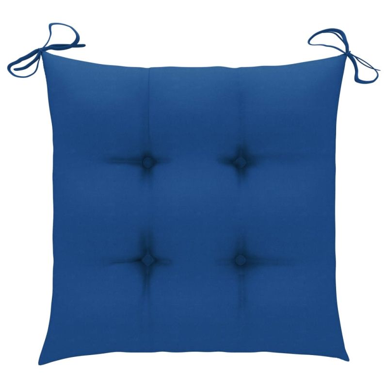 Градински столове със сини възглавници 6 бр тиково дърво масив