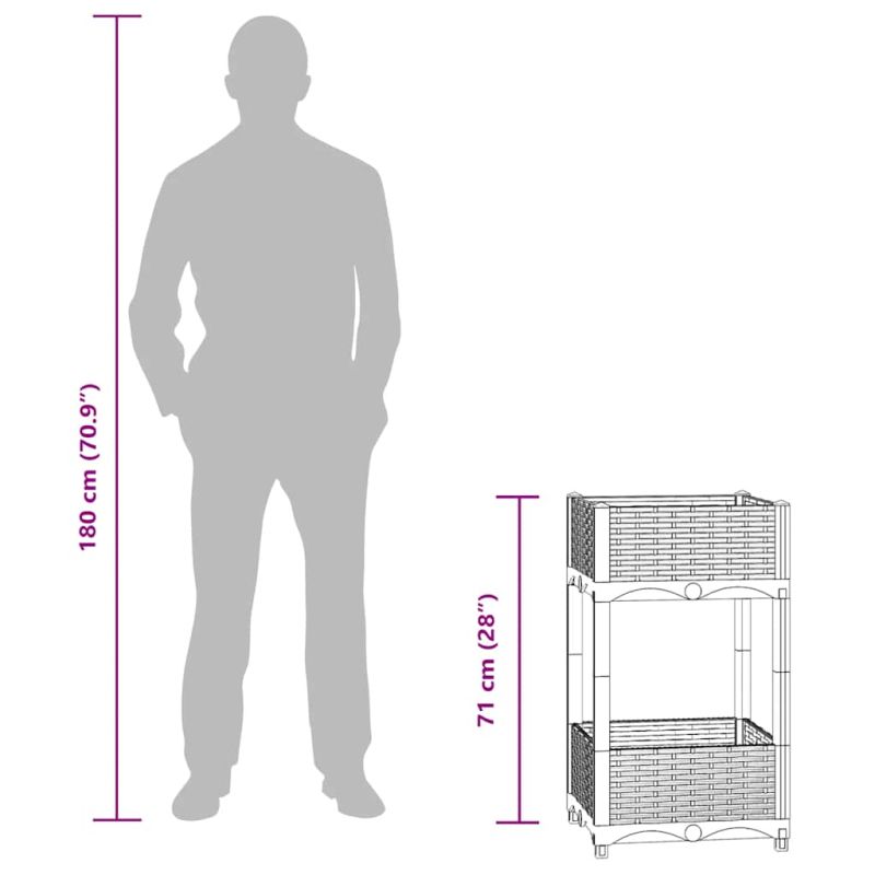 Тази повдигната леха ще бъде отлично решение за любители градинари, които искат да украсят своите градини, балкони или вътрешни дворове. Този плантер, снабден с 2 рафта, е изработен от полипропилен, което го прави здрав, износоустойчив и подходящ за ежедневна употреба на открито. Градинската леха е достатъчно дълбока и широка, за да побере голямо количество пръст и осигурява достатъчно място за вашите растения, зеленчуци, билки и цветя. Създайте прекрасен фон за вашите растения с тази елегантна леха за засаждане!