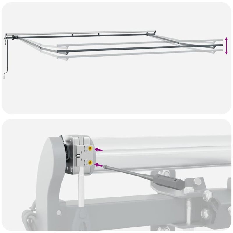 Създайте хубаво и прохладно място във вашия двор и се предпазете от ултравиолетовите лъчи с тази прибираща се тента! Издръжлив материал: Рамката на сенника е изработена от прахово боядисан алуминий, който е здрав и издръжлив. Тъканта с PU повърхностна обработка е UV устойчива. Тя ще предпази вашето семейство или гости от UV лъчи и ослепителна слънчева светлина.Автоматична функция: Можете лесно да отваряте и прибирате тентата чрез включеното дистанционно управление.Лесен за работа: Ъгълът и височината могат да се регулират, за да отговорят на вашите различни нужди. Можете да отваряте и прибирате тентата плавно с дългата манивела.Широки приложения: Прибиращата се тента се отличава с прост, стилен дизайн, който ще се слее добре с вашия дом или търговски обекти. Подходящ е за различни места, като тераси, вътрешни дворове, ресторанти, кафенета, магазини и др. Децата трябва да бъдат наблюдавани, за да се гарантира, че няма да си играят с уреда. Пазете децата далеч от зоната за сглобяване.Внимание: Прочетете внимателно инструкциите преди употреба и ги запазете за по-нататъшни справки.