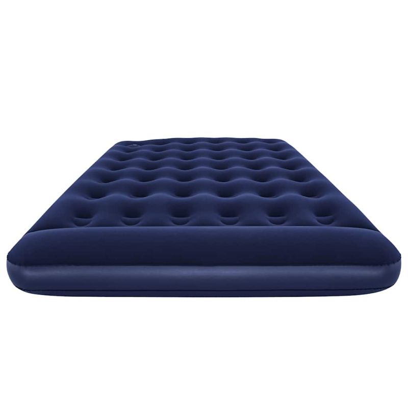 Това флокирано въздушно легло персон и половина Bestway 67226 може се напомпа до височина от 28 см с вградената крачна помпа, което го прави по-удобно от конвенционалното въздушно легло. Отличаващо се със стабилна винилова оребрена конструкция, това комфортно въздушно легло е перфектно за къмпинг. Водоустойчивата флокирана повърхност предотвратява подхлъзване и е удобно за лежане. Този лек надуваем матрак с дължина 203 см ще ви осигури чудесен нощен сън в къмпинга. Надуваемото въздушно легло има и удобна вградена възглавница. Въздушното легло може да се надуе и изпусне бързо с вградената крачна помпа. Лесно се сгъва за съхранение и транспорт, когато не се използва.