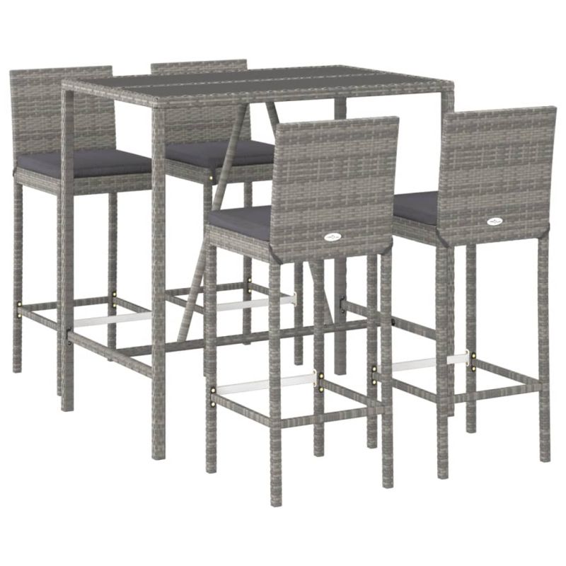 Градински бар комплект с възглавници 5 части сив полиратан